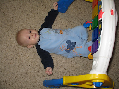 Elijah does very well in the Bumbo, but I don't think his legs will fit much longer!